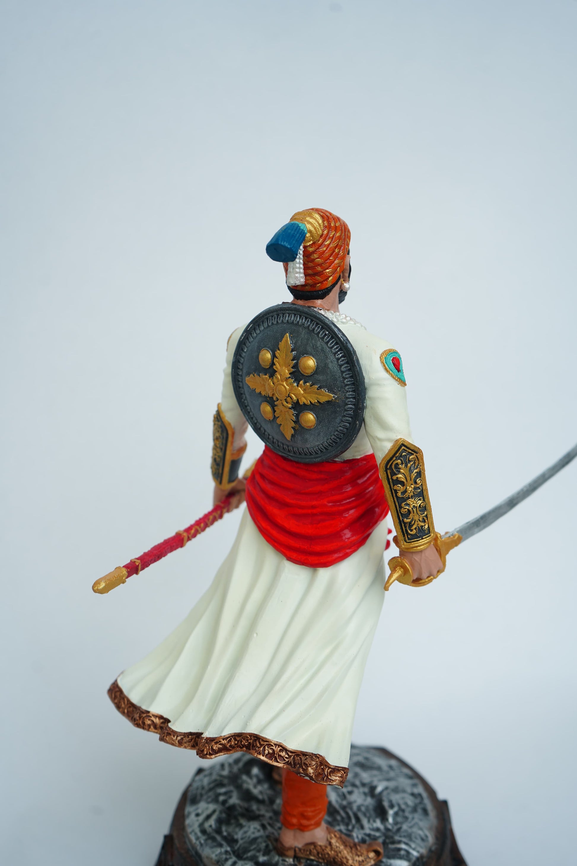 Design | Maharaj in a powerful standing posture, sword in hand, shield at the back |