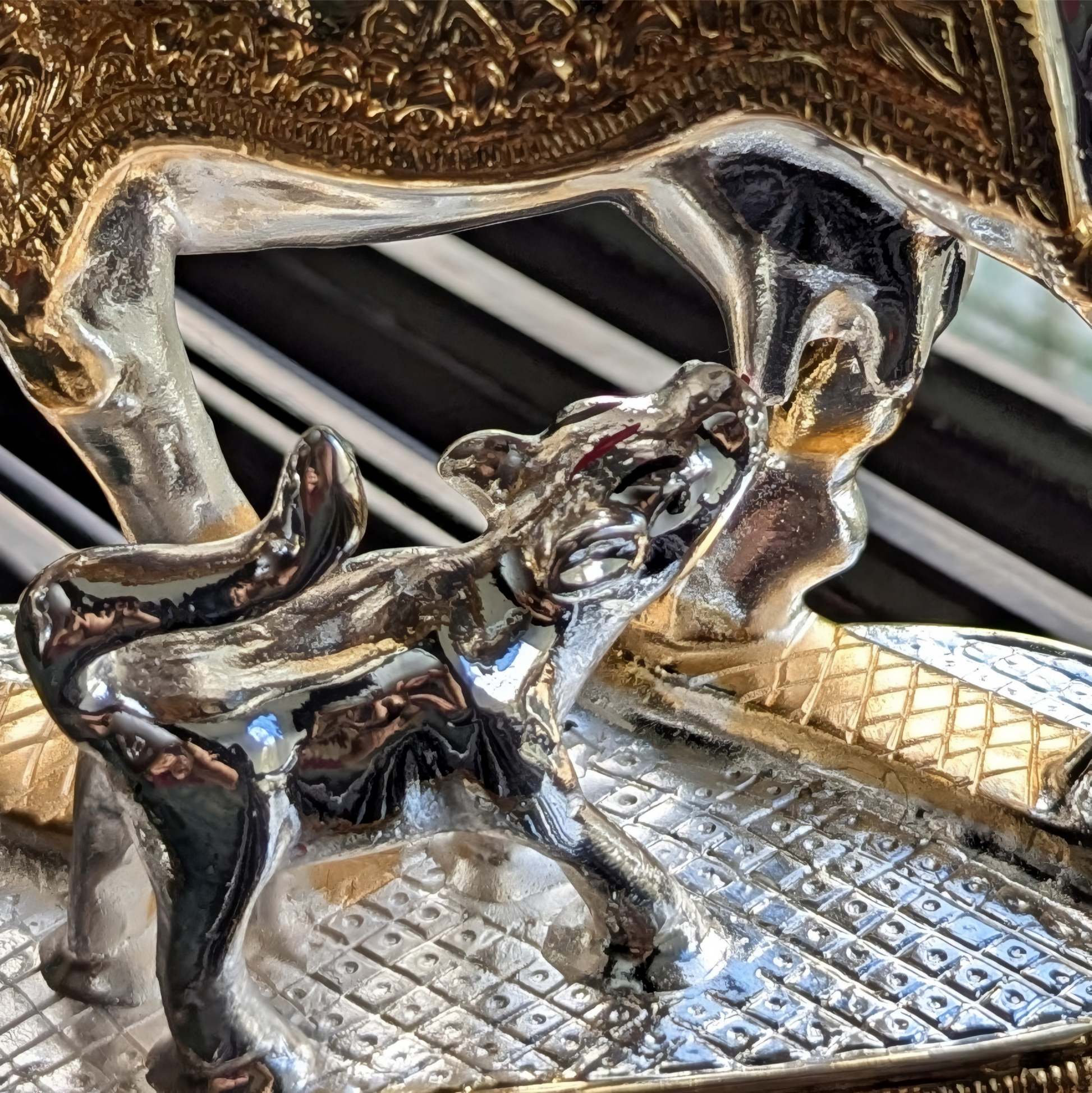 Celebrate the sacred bond of nourishment and abundance with the Aaradhyam Vastu Kamdhenu Cow with Calf Idol. Exquisitely crafted and adorned with 24K gold and 999 silver plating, this idol embodies the blessings of prosperity, fertility, and spiritual fulfillment. Inspired by Vedic tradition, Kamdhenu—the celestial wish-fulfilling cow—is revered as a divine symbol of all that nurtures and sustains life.