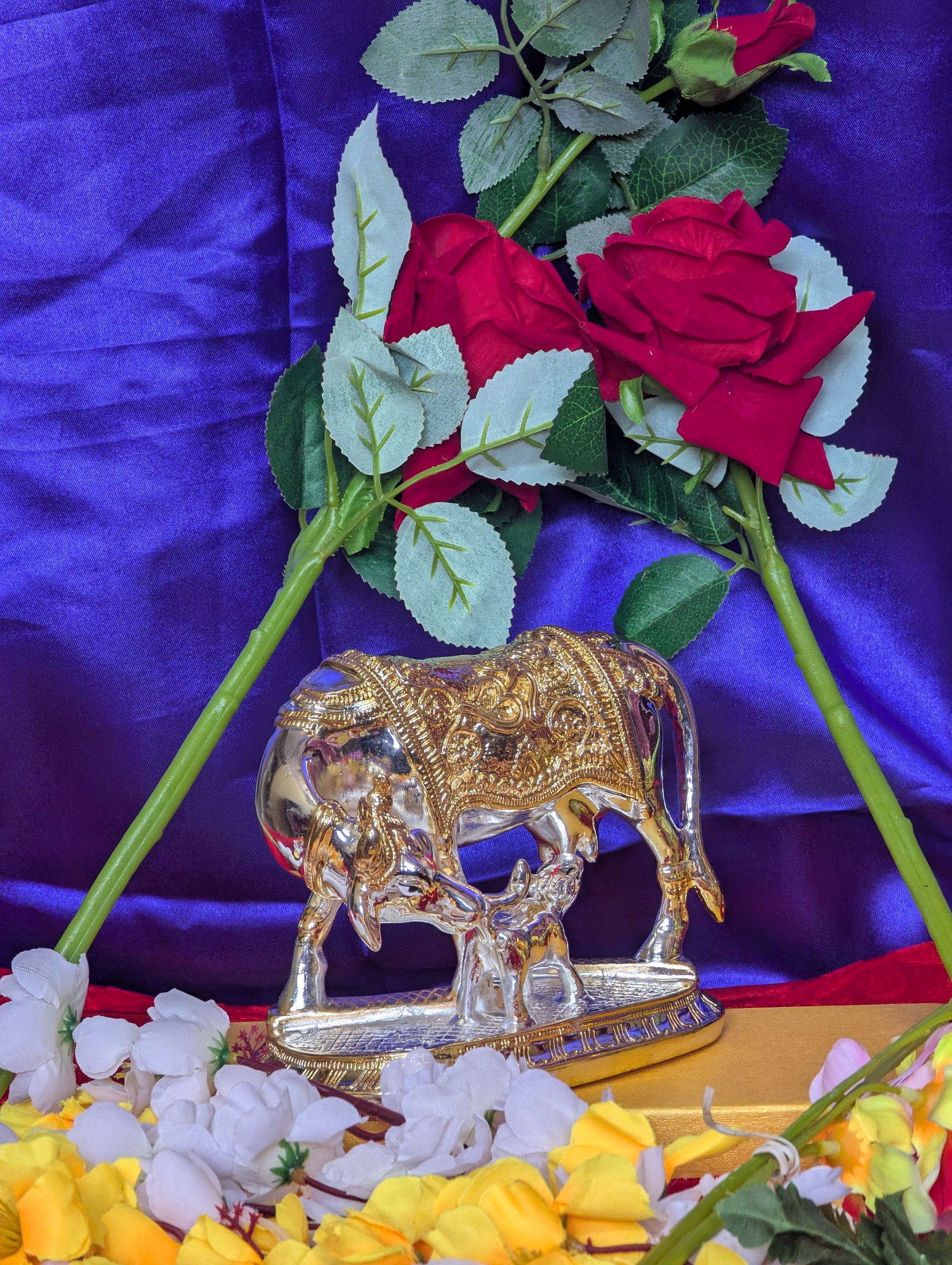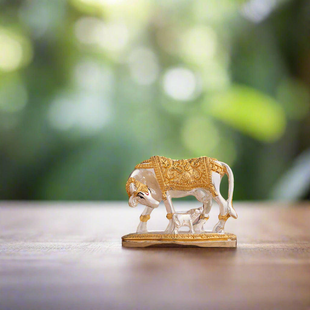 Kamdhenu Cow with Calf Idol - Gold & Silver Plated