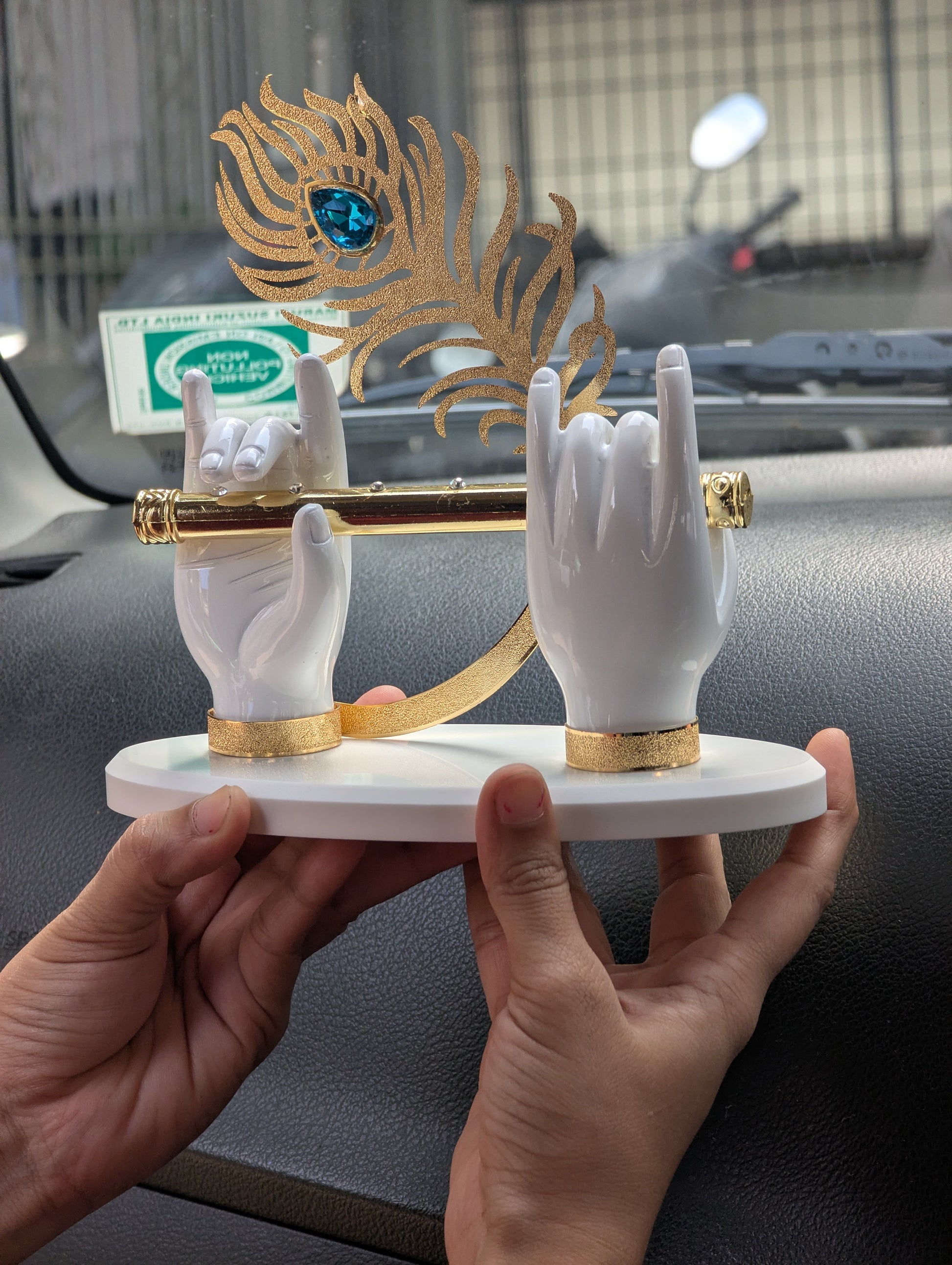 🎶 Sacred Symbolism: Krishna’s hand with flute symbolizes divine music, guidance, and eternal love