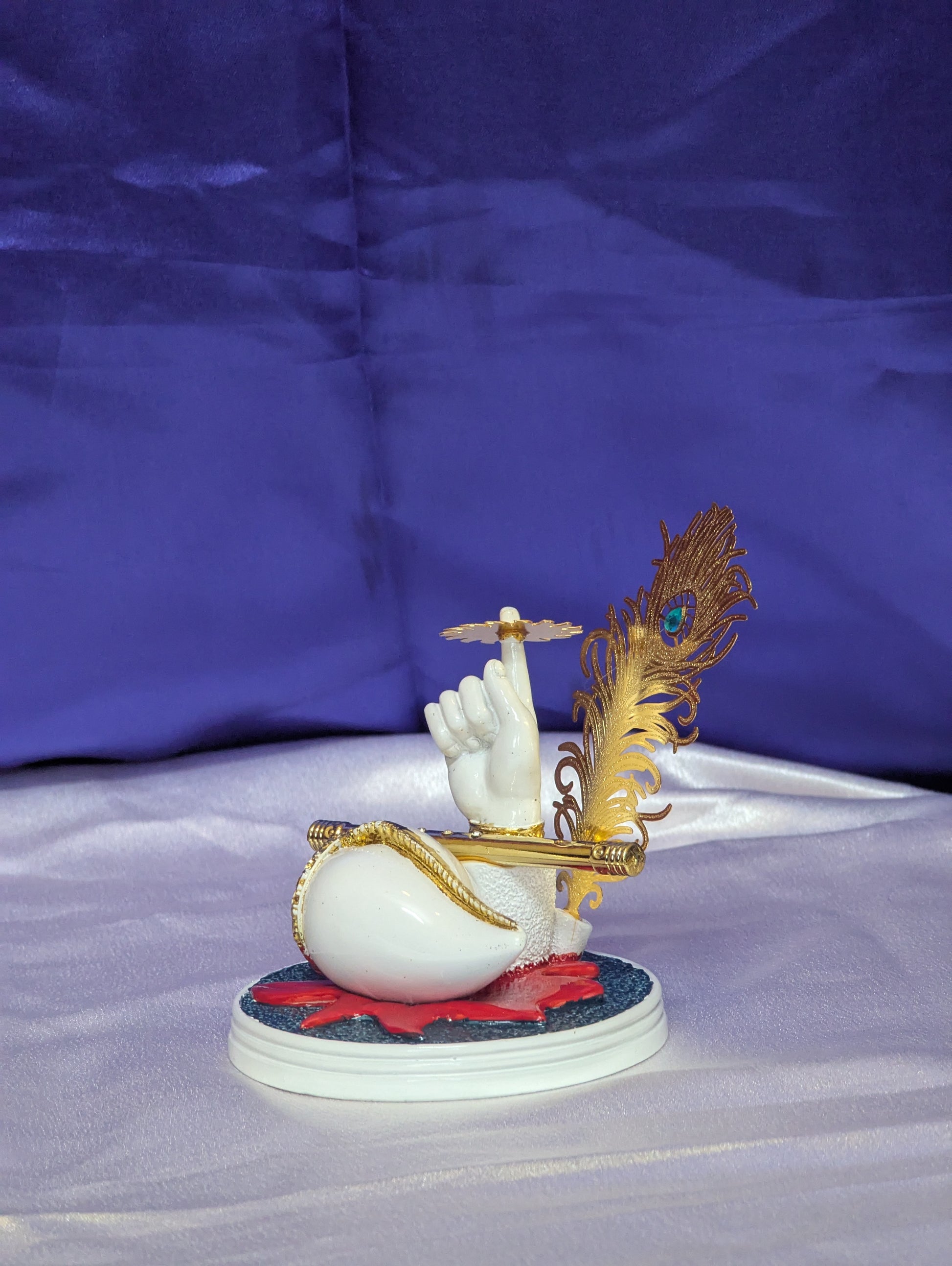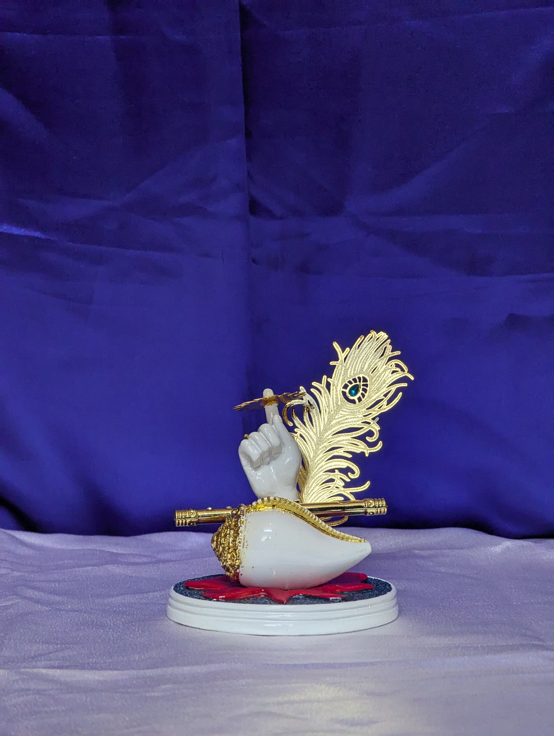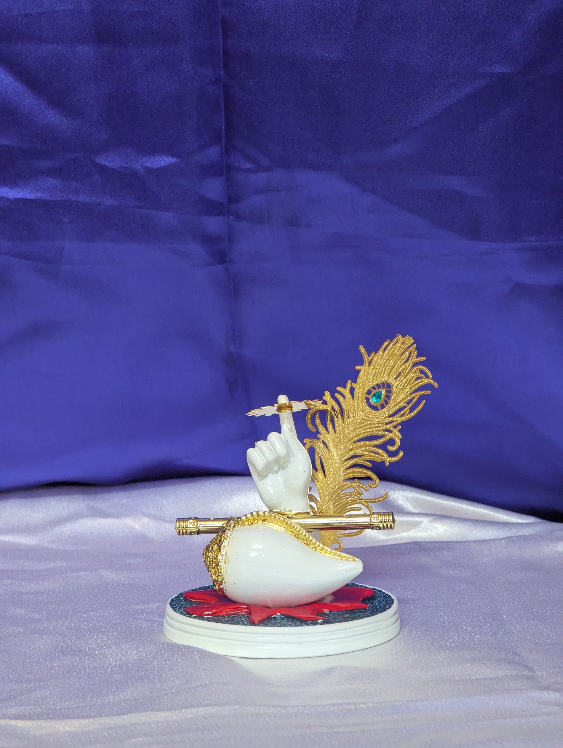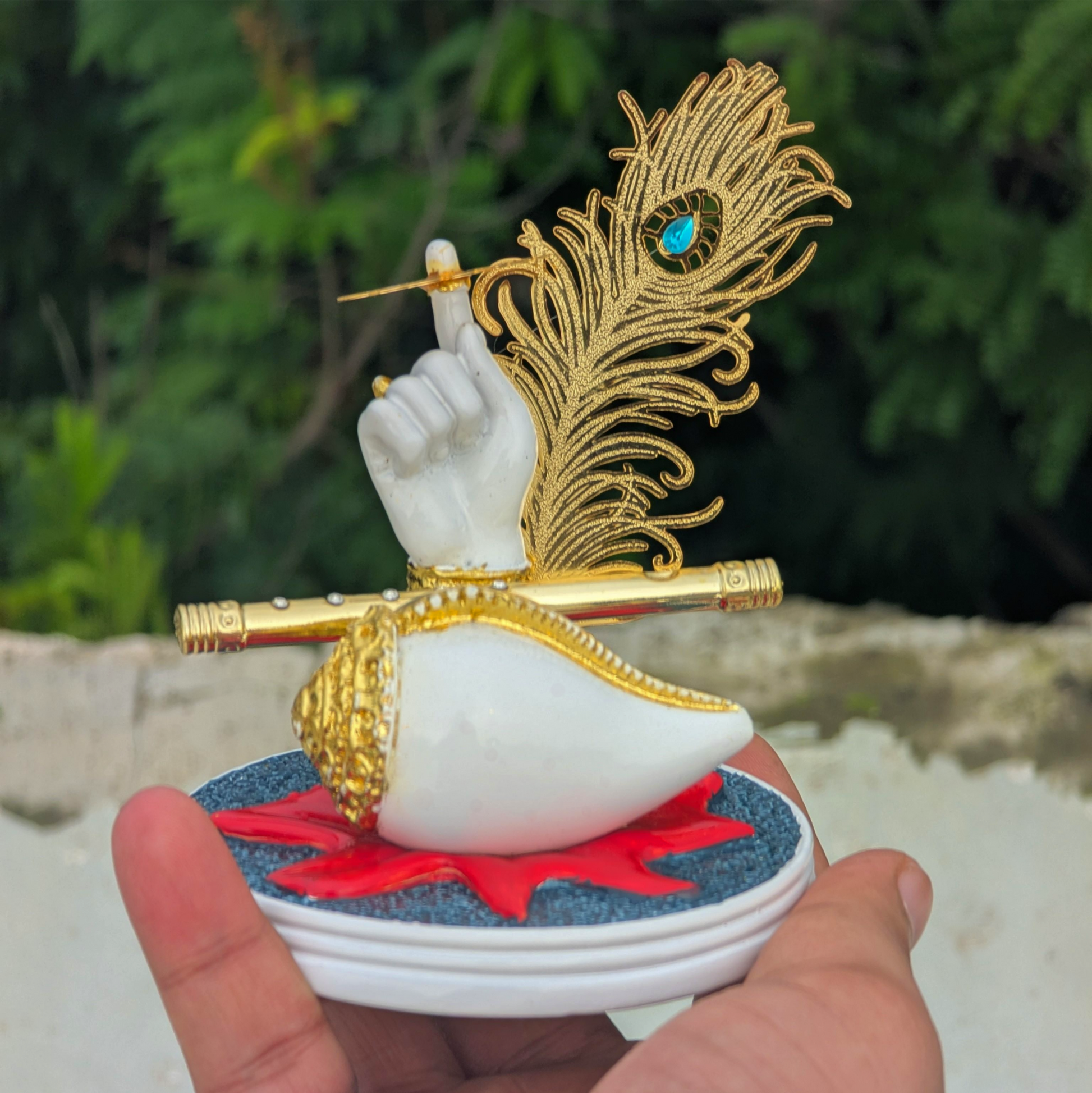 Step into a world of spiritual elegance with Aaradhyam’s Vishnu Hand Idol, a beautifully handcrafted symbol of Lord Vishnu’s eternal blessings. Designed to invoke peace, prosperity, and divine protection, this idol captures the sacred essence of Shankha, Sudarshan Chakra, Padma, and Mor Pankh – the powerful attributes of Lord Vishnu himself.