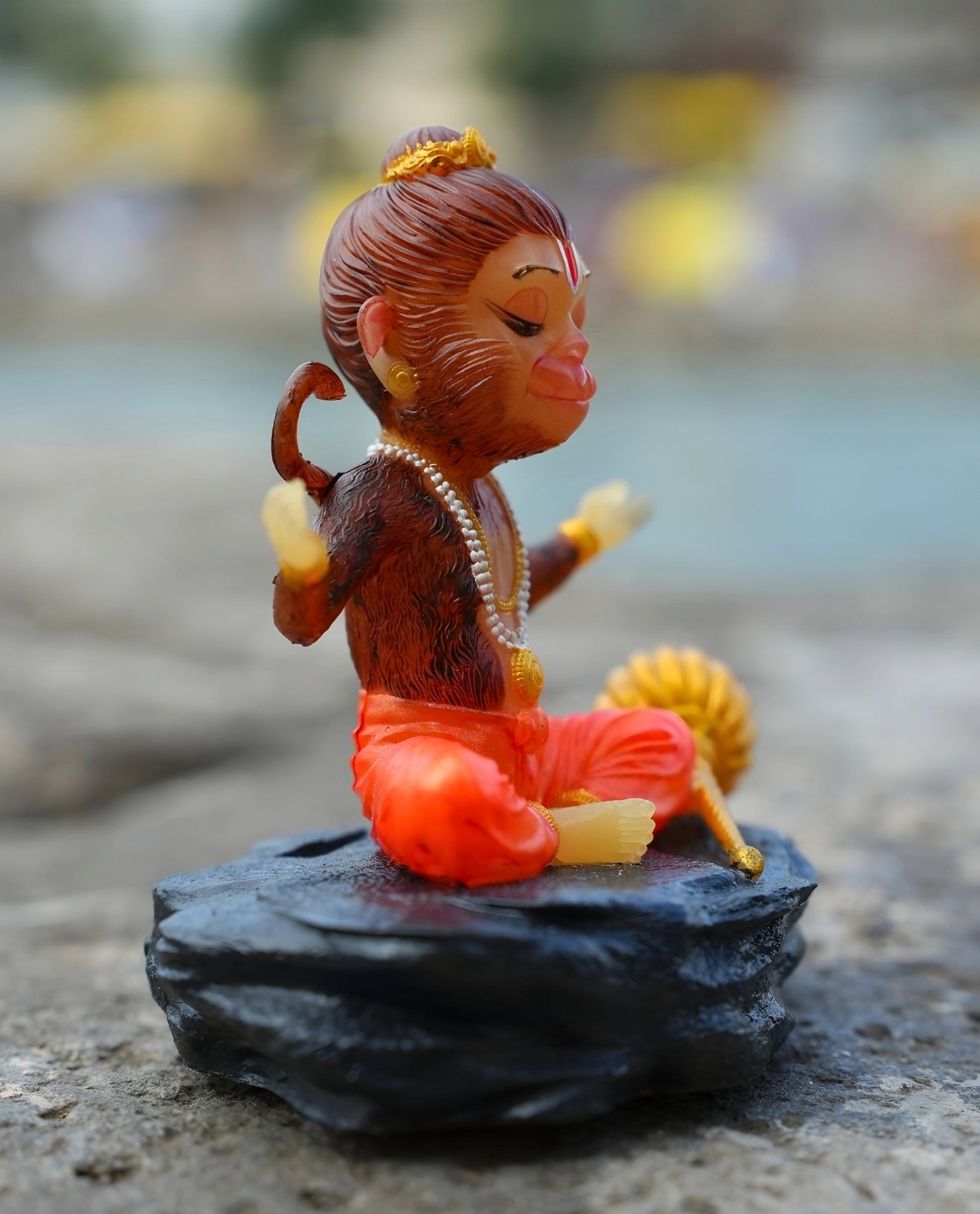 Crafted with fine detailing, this Hanuman murti for home décor is ideal for pooja room, study table, office desk, or car dashboard, helping you stay focused and spiritually connected.