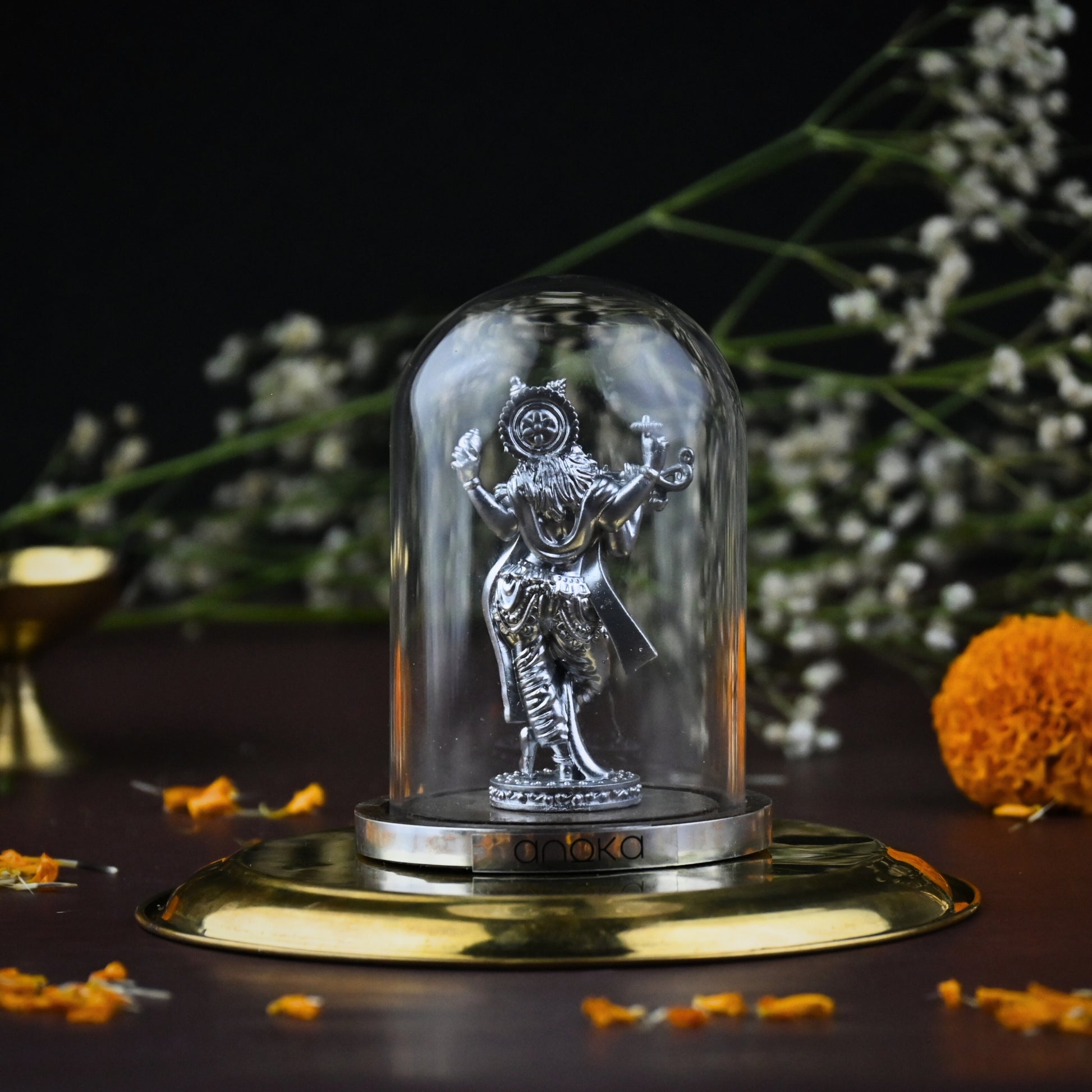 Let serenity flow through your space with Aaradhyam’s Anoka Murlidhar Krishna Idol, gracefully encased in a protective glass dome. 🌿