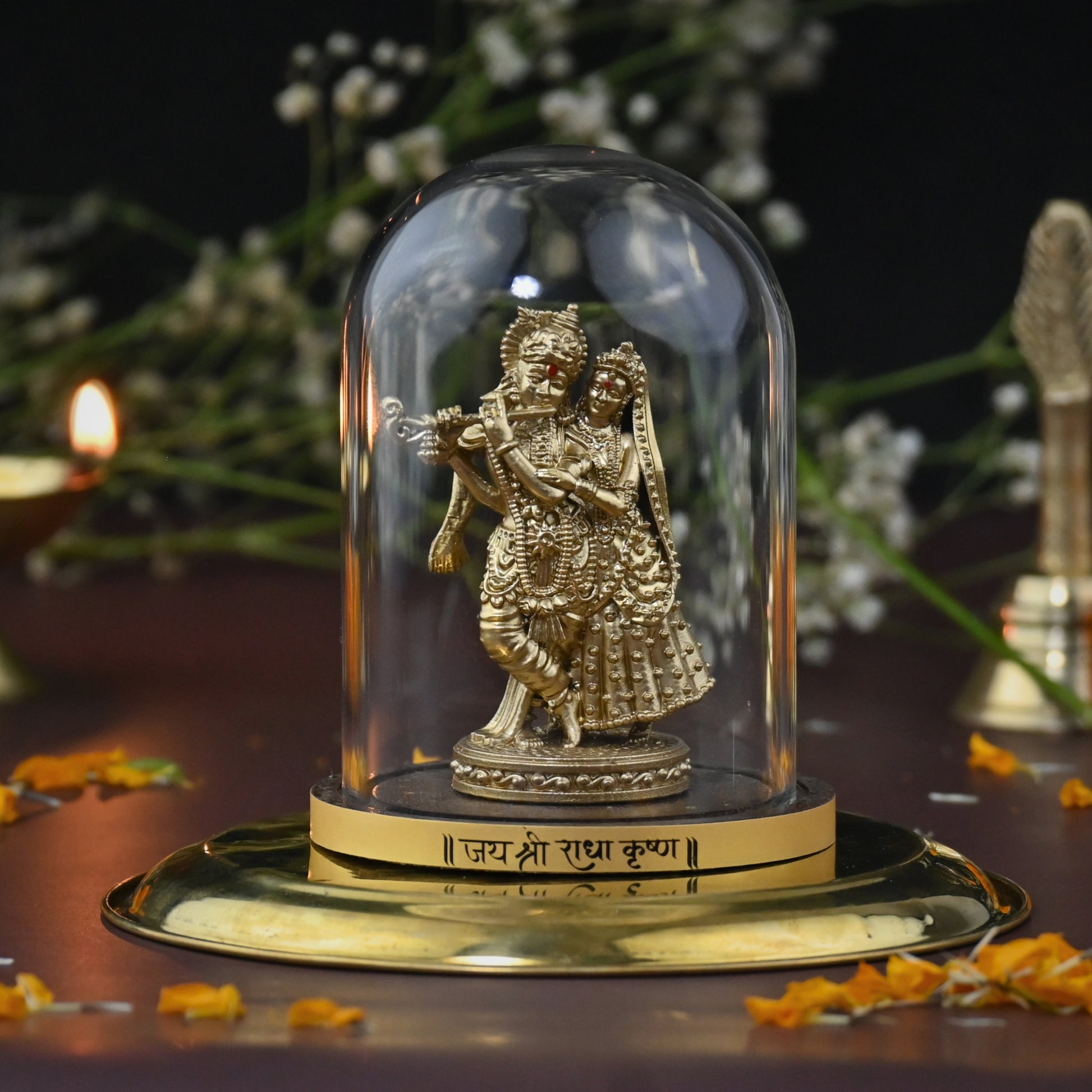 Protected under a borosilicate glass dome, this idol stays free from dust, dullness, and damage, ensuring that your beloved Murlidhar Krishna always remains divine and radiant — wherever you place Him.