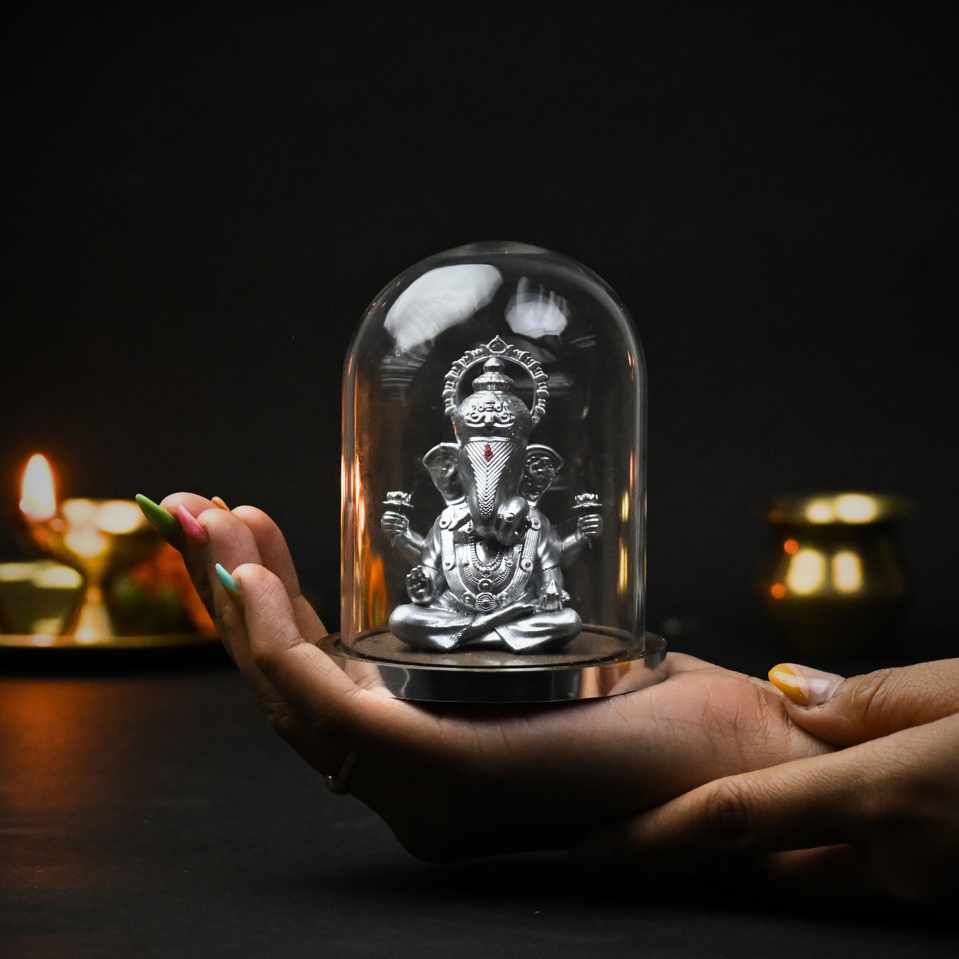 Protective Glass Dome: Keeps the idol dust-free and enhances its elegance.