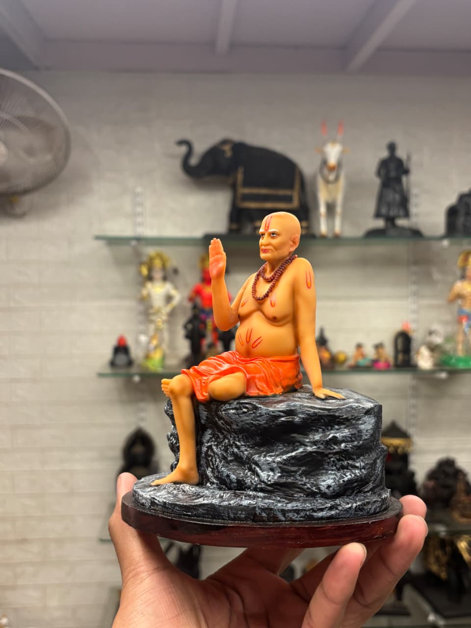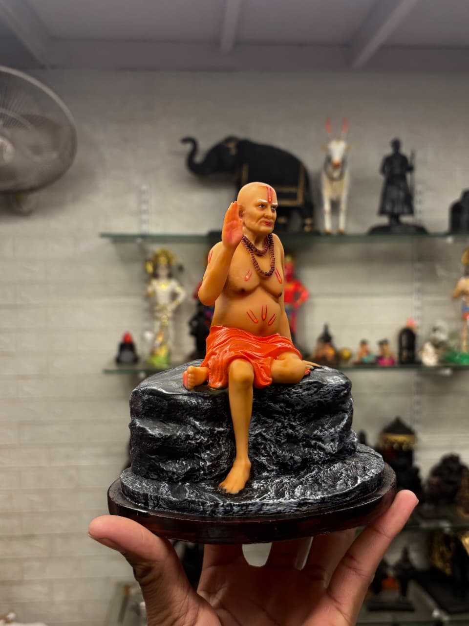 Bring home the sacred presence of Shri Swami Samarth Maharaj of Akkalkot, the revered saint worshipped as an incarnation of Lord Dattatreya. This finely detailed 7-inch idol beautifully captures Swami Samarth seated on a rock base, radiating calmness, wisdom, and unconditional blessings.