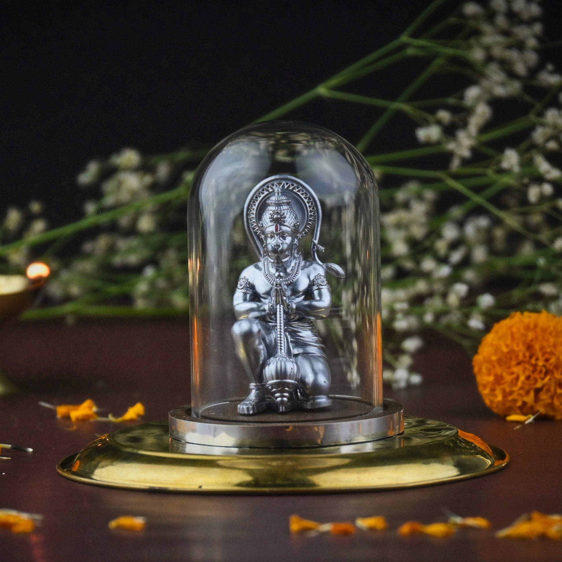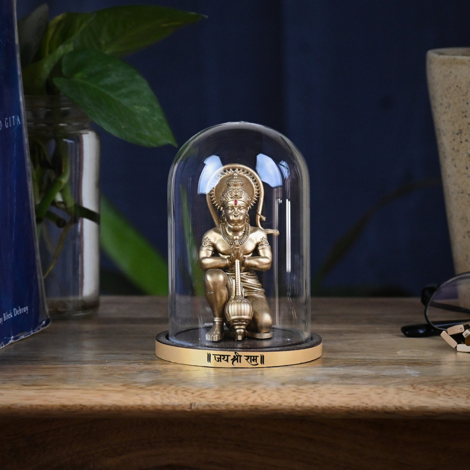 Experience the mighty energy of devotion and power with the Mahabali Hanuman idol from Aaradhyam’s ✨ Anoka Glass Dome Collection.